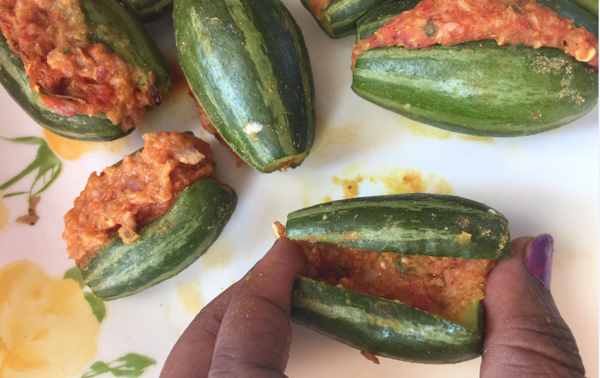 Now either Microwave the stuffed Potals for 5 mins or cook them in a wide-bottom non-stick pan on low flame for 5 mins. Cover the pan with a lid.